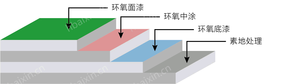 3、环氧底漆:采用渗透性及附着力特强环氧底漆滚涂一道,增强表面附着力;