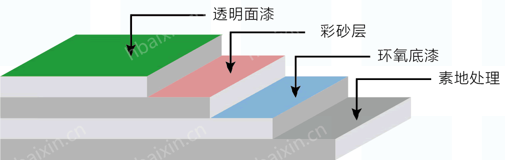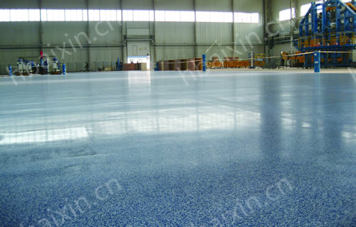 4、彩砂中涂:将环氧树脂加入适量的彩砂,用镘刀将其均匀涂布一道,机械压光;